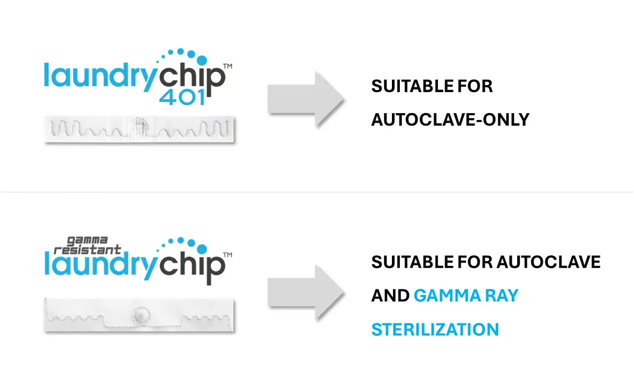 Different healthcare environments rely on different sterilization methods. Datamars offers dedicated LaundryChip™ options so you can match RFID traceability to your sterilization process.