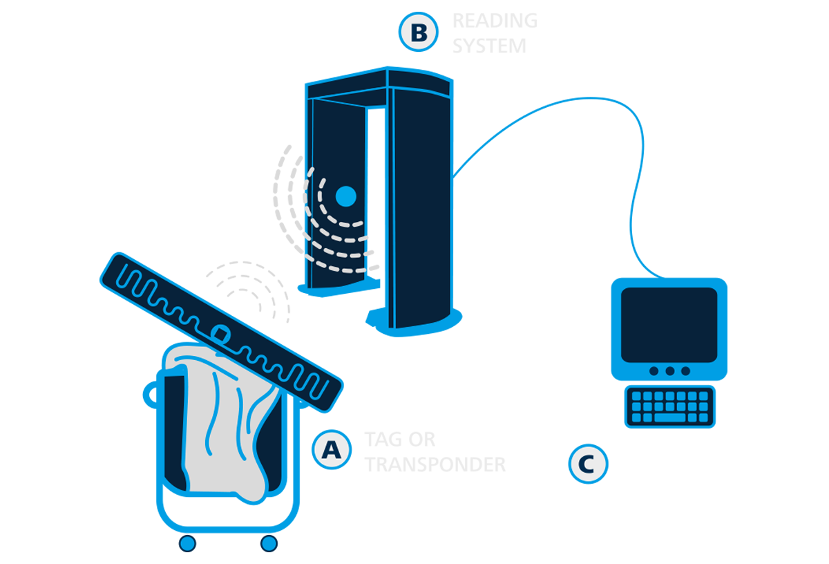 La RFID (identification par radiofréquence) est l’utilisation sans fil de champs électromagnétiques pour transférer des données via des étiquettes (micropuces), ces étiquettes transportent des informations stockées électroniquement et sont attachées à des objets/textiles afin de les identifier et de les suivre automatiquement.